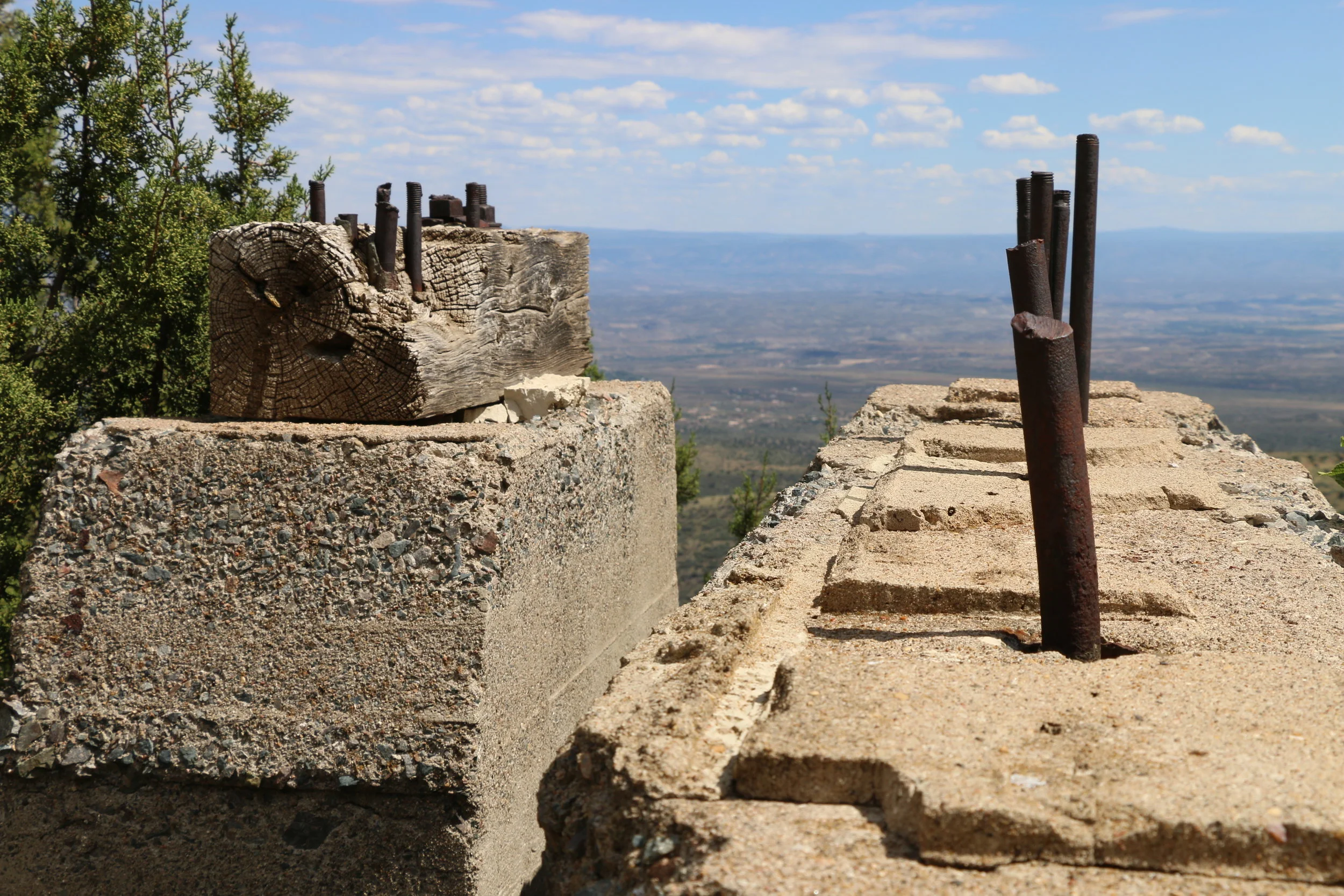 Today, numerous cement foundations, an ore bin, and lots of metal shards and rods remain strewn about and visible from the main road. The property is owned by Freeport-McMoRan (formerly Phelps-Dodge) who actively manage wastewater runoff. The Copper Chief was part of the Volunteer Remediation Program in which numerous shafts were sealed off and water runoff managed in tanks at the lower level of the mine complex. The Copper Chief sits about 4 miles southwest of Clarkdale. It is accessed via F.R. 493 and continues uphill as part of Mingus Mountain Trail. Observe all posted signs and gates at the mine. Most of the ruins are visible from F.R. 493.